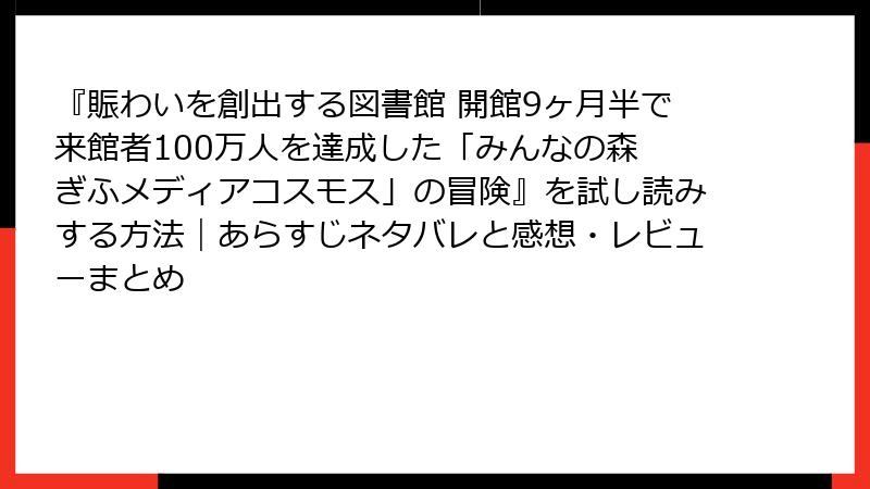 『賑わいを創出する図書館』を賢く手に入れる:無料試し読みと中古探しの完全ガイド