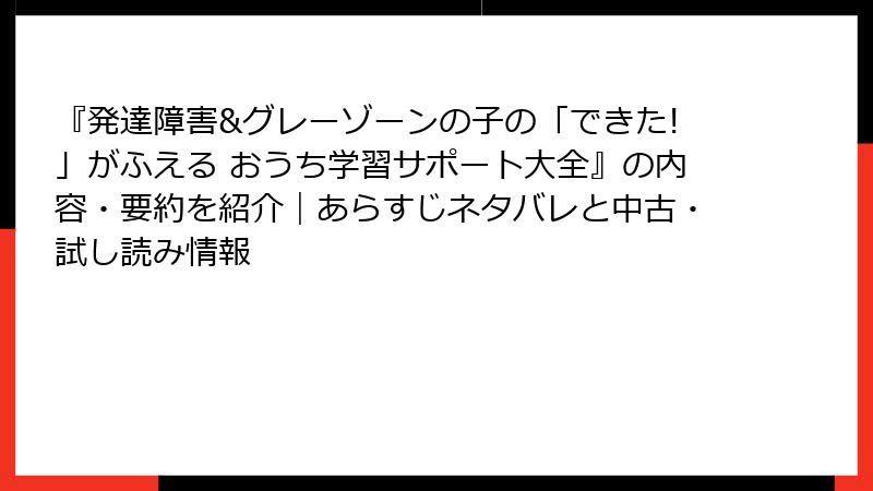 発達障害&グレーゾーンの子の「できた!」がふえる おうち学習サポート大全 ~無料試し読み&中古探しの賢いコツ完全ガイド~