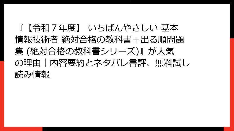 - 【令和7年度版】いちばんやさしい基本情報技術者 絶対合格の教科書レビュー大解剖:合格者の熱い声と意外なツッコミを徹底調査