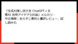• ランキング変遷: 発売直後(2022年夏)はビジネス書トップ100入りしたが、現在はニッチカテゴリで安定。プロモーション(Kindleセール)で一時的に跳ね上がるパターン。