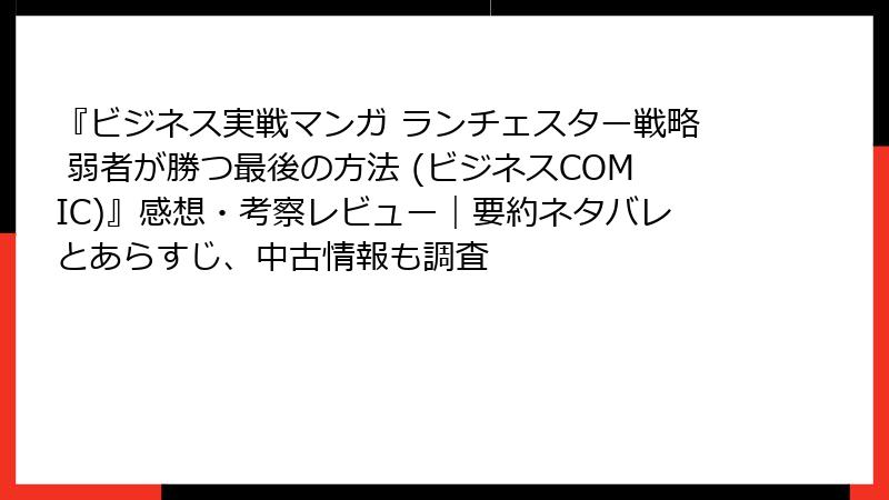 『ビジネス実戦マンガ ランチェスター戦略 弱者が勝つ最後の方法 (ビジネスCOMIC)』感想・考察レビュー|要約ネタバレとあらすじ、中古情報も調査