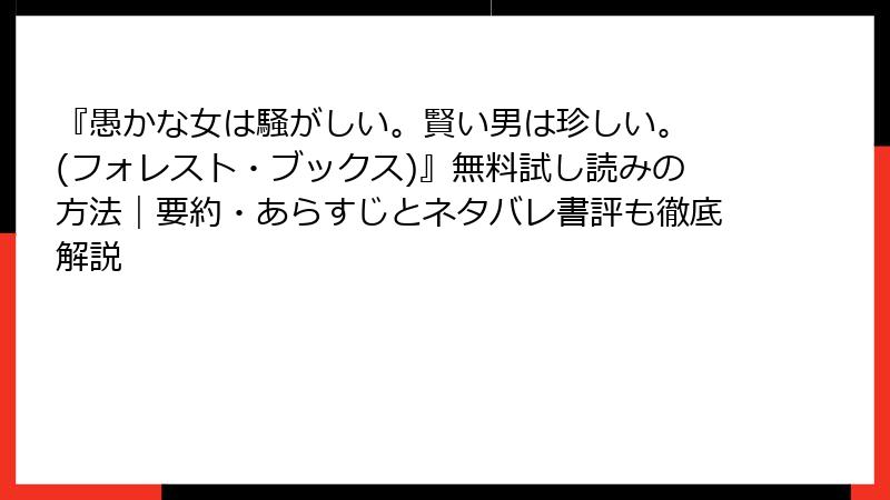 『愚かな女は騒がしい。賢い男は珍しい。』を賢く手に入れる! 無料試し読みと中古探しの完全ガイド