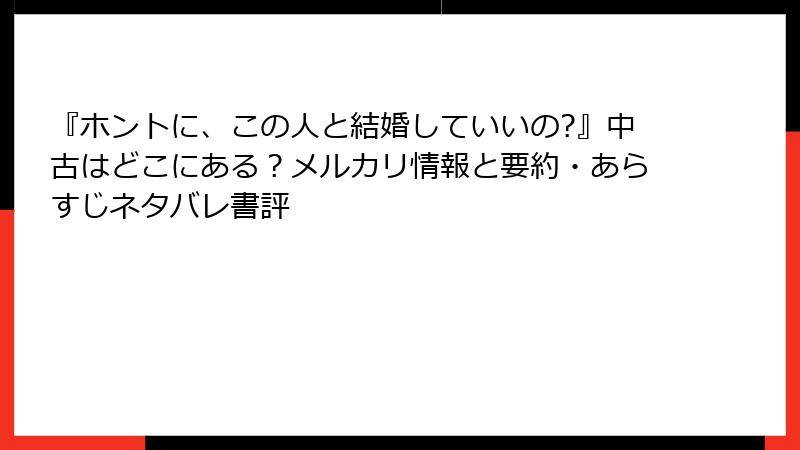 『ホントに、この人と結婚していいの?』を無料で試し読み&中古本探しの完全ガイド