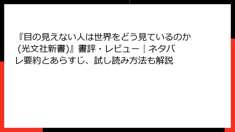 『目の見えない人は世界をどう見ているのか』:無料試し読みと中古本ハントの完全ガイド