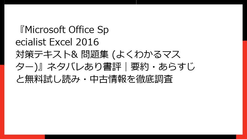 『Microsoft Office Specialist Excel 2016 対策テキスト& 問題集 (よくわかるマスター)』ネタバレあり書評|要約・あらすじと無料試し読み・中古情報を徹底調査