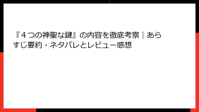 『4つの神聖な鍵』レビュー大解剖:絶賛の嵐と隠れた声まで徹底調査