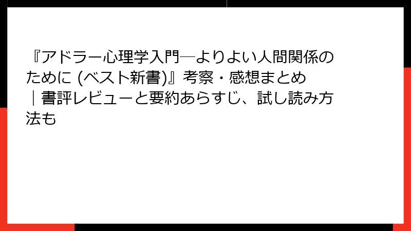 『アドラー心理学入門―よりよい人間関係のために (ベスト新書)』考察・感想まとめ|書評レビューと要約あらすじ、試し読み方法も