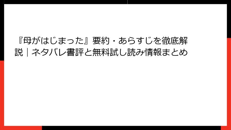 の見出しタグから始めて、ブログ記事形式で出力して。複数の タグを使用して、読み応えがあるように。HTMLで出力。 や などの箇条書きのHTMLタグや、tableタグも使用してOK。ただし、リンクやURLは、絶対に、挿入しない。 この書籍を、Kindleなどで無料で試し読みする方法について、詳しく。また、この書籍の中古版が、どこにあるのか、例えばメルカリに存在するのか、といった点についても、詳しく。単一の の見出しタグから始めて、ブログ記事形式で出力して。複数の タグを使用して、読み応えがあるように。HTMLで出力。 や などの箇条書きのHTMLタグや、tableタグも使用してOK。ただし、リンクやURLは、絶対に、挿入しない。 むぴー『母がはじまった』入手ガイド:無料試し読みから中古探しまで徹底解説