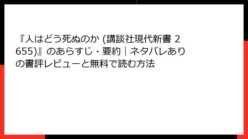 『人はどう死ぬのか (講談社現代新書 2655)』のあらすじ・要約|ネタバレありの書評レビューと無料で読む方法