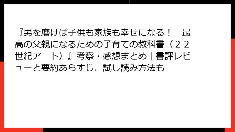『男を磨けば子供も家族も幸せになる! 最高の父親になるための子育ての教科書(22世紀アート)』考察・感想まとめ|書評レビューと要約あらすじ、試し読み方法も