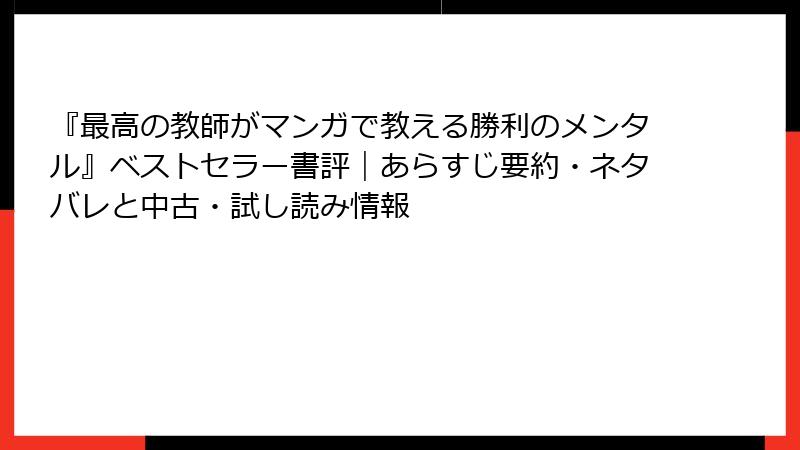 『最高の教師がマンガで教える勝利のメンタル』ベストセラー書評|あらすじ要約・ネタバレと中古・試し読み情報