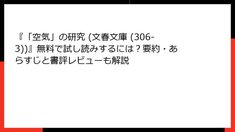 『「空気」の研究 (文春文庫 (306‐3))』無料で試し読みするには?要約・あらすじと書評レビューも解説