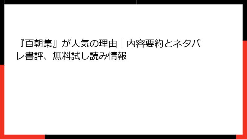 『百朝集』が人気の理由|内容要約とネタバレ書評、無料試し読み情報