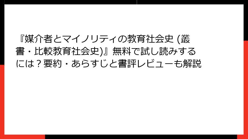『媒介者とマイノリティの教育社会史』:無料試し読みと中古本探しのガイド
