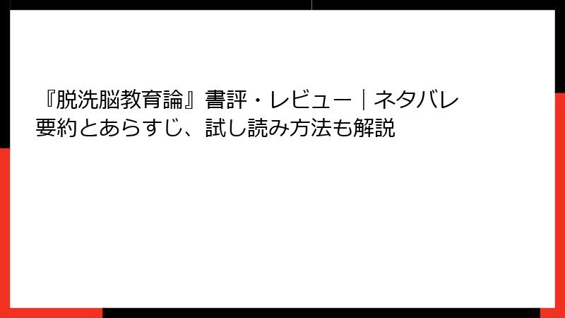 『脱洗脳教育論』を無料で試し読み&中古入手ガイド:手軽に教育の闇に触れる方法
