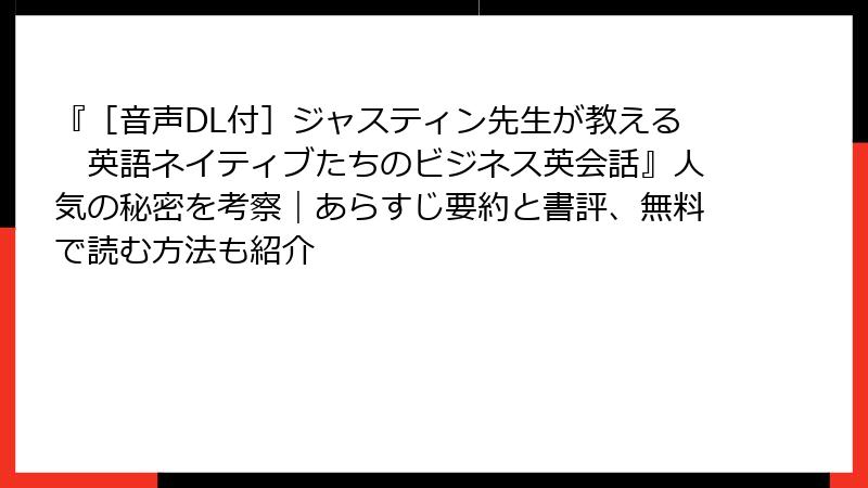 ジャスティン先生が教える英語ネイティブたちのビジネス英会話:読者のリアルなレビューと書評を深掘り