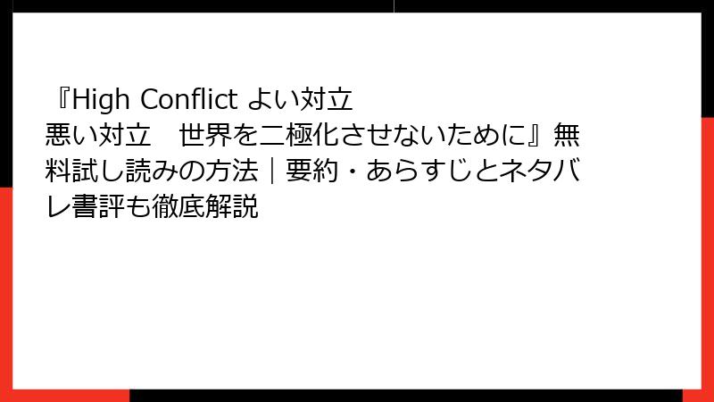 『High Conflict よい対立 悪い対立 世界を二極化させないために』無料試し読みの方法|要約・あらすじとネタバレ書評も徹底解説
