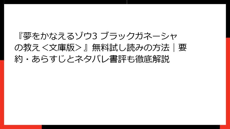 3. 夢をかなえるゾウ3 ブラックガネーシャの教え:無料試し読みから中古入手まで、賢く手に入れる完全ガイド