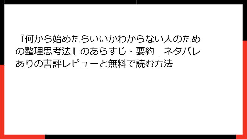 『何から始めたらいいかわからない人のための整理思考法』のあらすじ・要約|ネタバレありの書評レビューと無料で読む方法