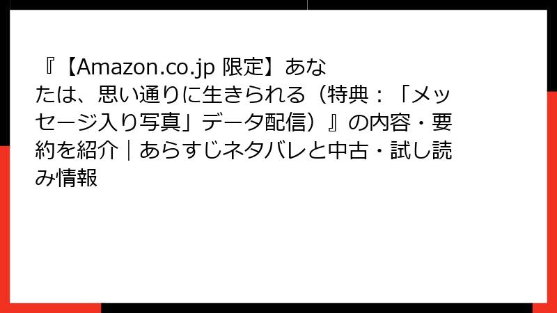 『【Amazon.co.jp 限定】あなたは、思い通りに生きられる(特典:「メッセージ入り写真」データ配信)』の内容・要約を紹介|あらすじネタバレと中古・試し読み情報