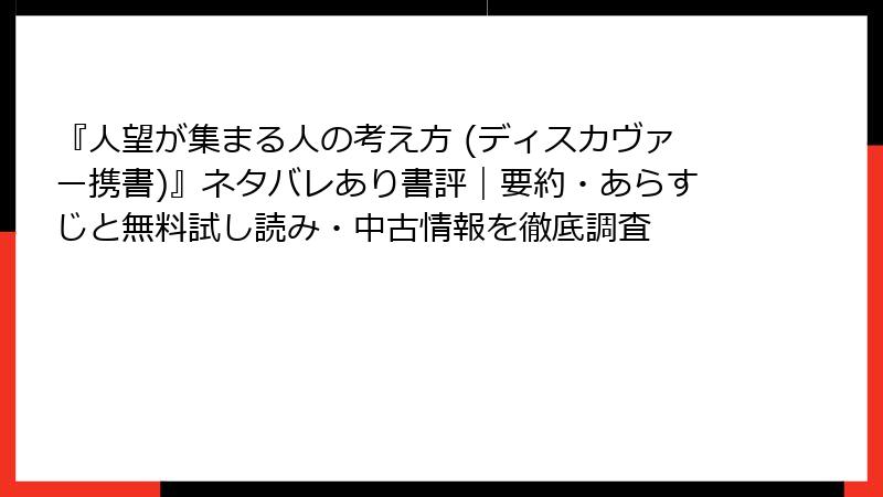 人望が集まる人の考え方:無料試し読みと中古本ハントの完全ガイド