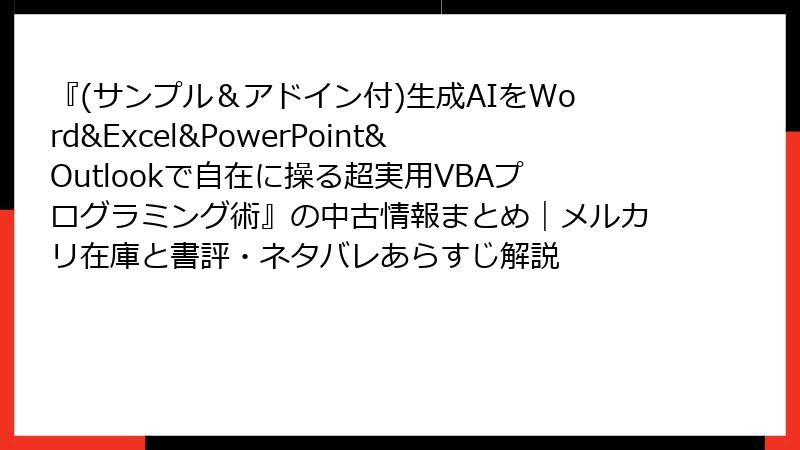 『(サンプル&アドイン付)生成AIをWord&Excel&PowerPoint&Outlookで自在に操る超実用VBAプログラミング術』の中古情報まとめ|メルカリ在庫と書評・ネタバレあらすじ解説