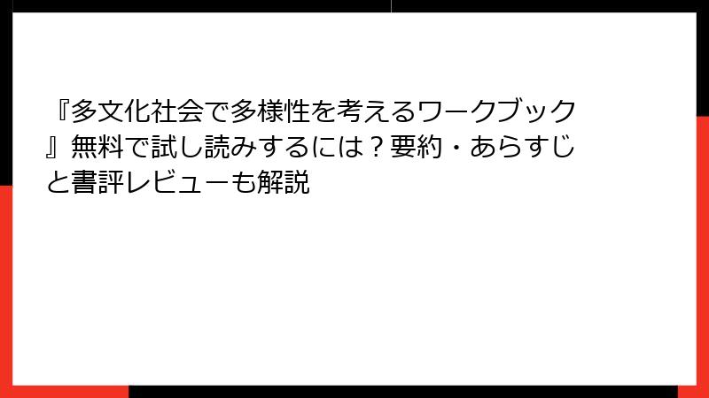 『多文化社会で多様性を考えるワークブック』無料で試し読みするには?要約・あらすじと書評レビューも解説