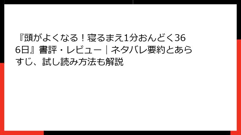 『頭がよくなる!寝るまえ1分おんどく366日』書評・レビュー|ネタバレ要約とあらすじ、試し読み方法も解説