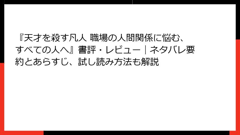 『天才を殺す凡人 職場の人間関係に悩む、すべての人へ』書評・レビュー|ネタバレ要約とあらすじ、試し読み方法も解説