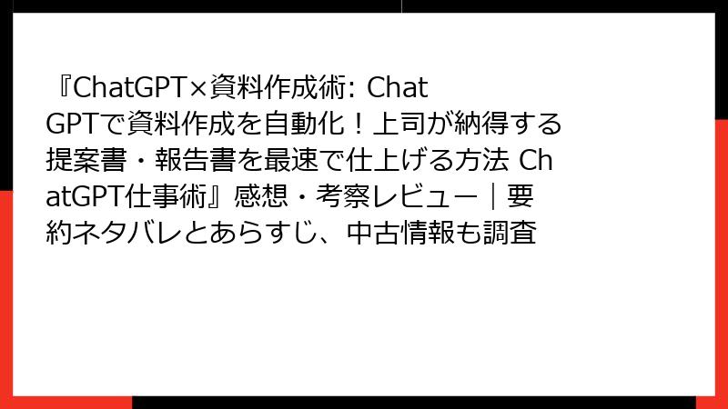 ChatGPTで資料作成を革命的に変える!『ChatGPT×資料作成術』の徹底レビュー