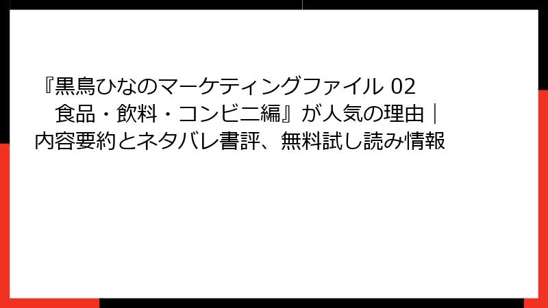 『黒鳥ひなのマーケティングファイル 02 食品・飲料・コンビニ編』が人気の理由|内容要約とネタバレ書評、無料試し読み情報