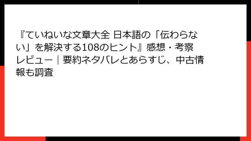 ていねいな文章大全 日本語の「伝わらない」を解決する108のヒント – 詳細なあらすじと要約