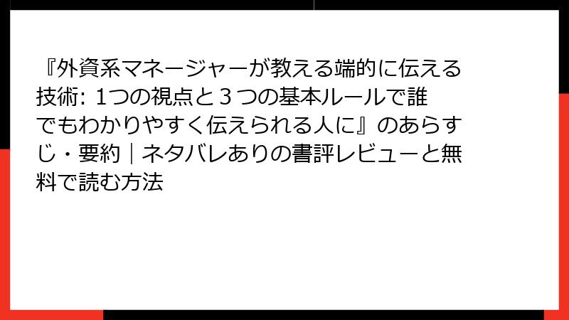 『外資系マネージャーが教える端的に伝える技術: 1つの視点と3つの基本ルールで誰でもわかりやすく伝えられる人に』のあらすじ・要約|ネタバレありの書評レビューと無料で読む方法