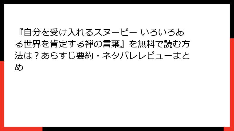 スヌーピーの優しい世界観に禅の智慧が溶け込む人気作、『自分を受け入れるスヌーピー いろいろある世界を肯定する禅の言葉』。新品価格が1,400円前後する中、まずは無料で試し読みして魅力を確かめたいですよね。2025年現在、電子書籍のサンプルが充実しており、中古市場も活況。メルカリを中心に、入手しやすさを徹底調査しました。ネタバレなしで、心の準備を整えつつ、賢く手に入れるコツをブログ風にまとめます。あなたもスヌーピーの屋根で一息つきながら、読書の第一歩を踏み出してみては?