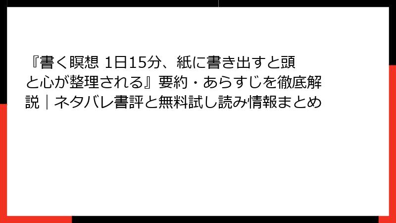 『書く瞑想 1日15分、紙に書き出すと頭と心が整理される』要約・あらすじを徹底解説|ネタバレ書評と無料試し読み情報まとめ