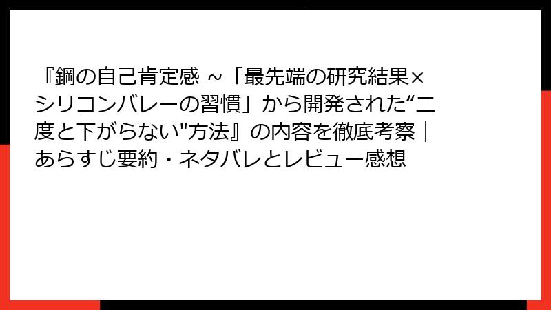 『鋼の自己肯定感 ~「最先端の研究結果×シリコンバレーの習慣」から開発された“二度と下がらない”方法』の内容を徹底考察|あらすじ要約・ネタバレとレビュー感想