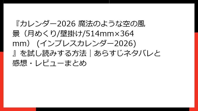 空の美しさに魅了されるカレンダー『カレンダー2026 魔法のような空の風景』。荒木健太郎氏の厳選写真と解説が詰まったこの一冊(一枚?)は、2025年9月の発売以来、空好きの間で大人気です。でも、1650円の本格派カレンダーだけに、まずは中身をチラ見したいし、中古でお得に狙いたい人も多いはず。今回は、そんな欲求に応えて、無料試し読みの方法から中古版の潜伏先まで、徹底リサーチ。ブログ風に、リストやテーブルでサクッとまとめました。2025年12月現在のお得情報をお届けしますよ!