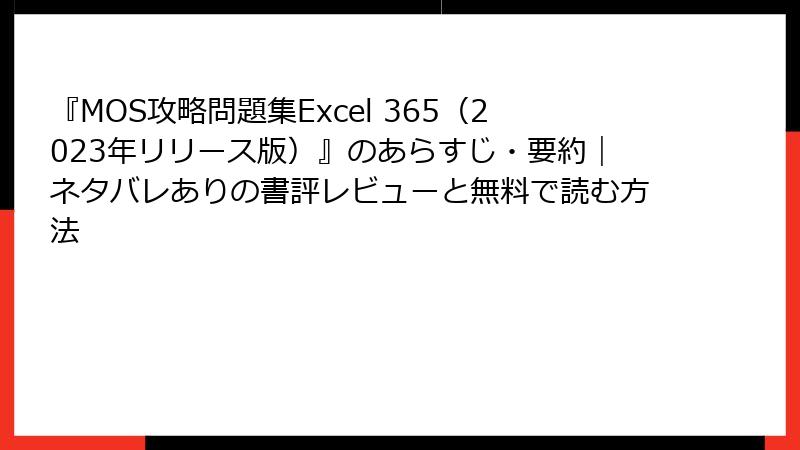 『MOS攻略問題集Excel 365(2023年リリース版)』のあらすじ・要約|ネタバレありの書評レビューと無料で読む方法