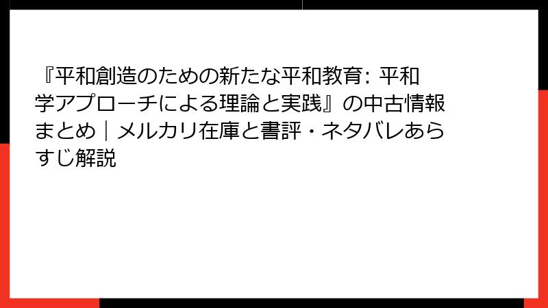 『平和創造のための新たな平和教育: 平和学アプローチによる理論と実践』の中古情報まとめ|メルカリ在庫と書評・ネタバレあらすじ解説