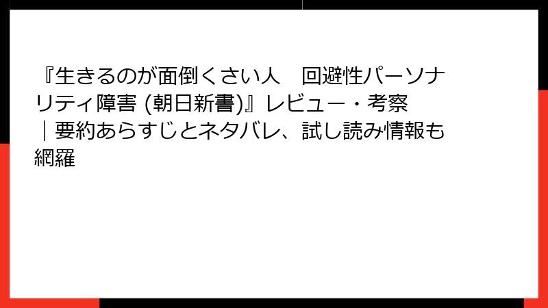 『生きるのが面倒くさい人 回避性パーソナリティ障害』に対するレビューと書評の深掘り