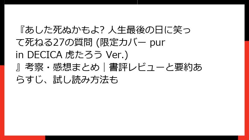 『あした死ぬかもよ? 人生最後の日に笑って死ねる27の質問 (限定カバー purin DECICA 虎たろう Ver.)』考察・感想まとめ|書評レビューと要約あらすじ、試し読み方法も