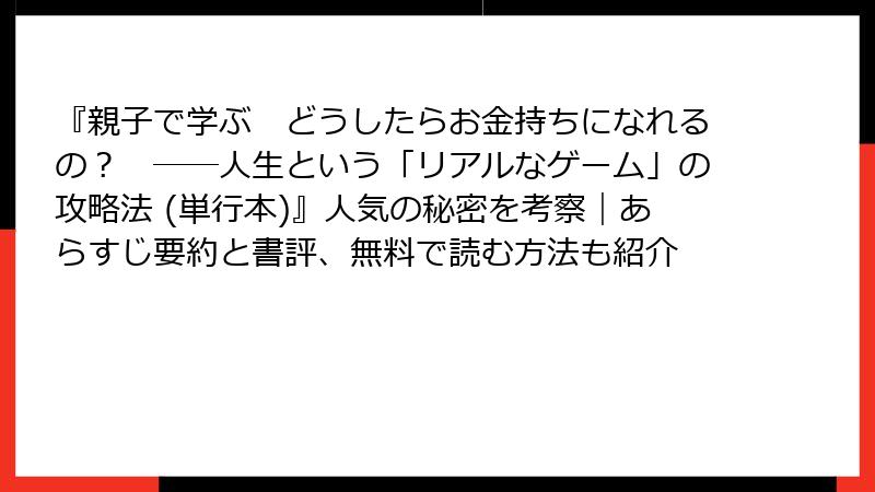 - 親子で学ぶ どうしたらお金持ちになれるの? ――人生という「リアルなゲーム」の攻略法 詳細要約(ネタバレ満載)