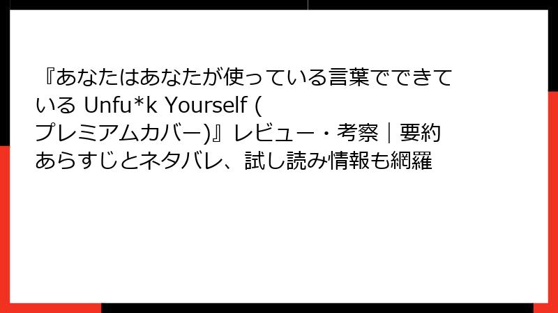 『あなたはあなたが使っている言葉でできている Unfu*k Yourself』 レビュー&書評大解剖:称賛の嵐と厳しいツッコミまで