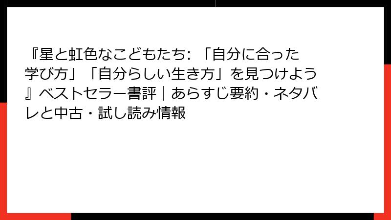 『星と虹色なこどもたち: 「自分に合った学び方」「自分らしい生き方」を見つけよう』ベストセラー書評|あらすじ要約・ネタバレと中古・試し読み情報