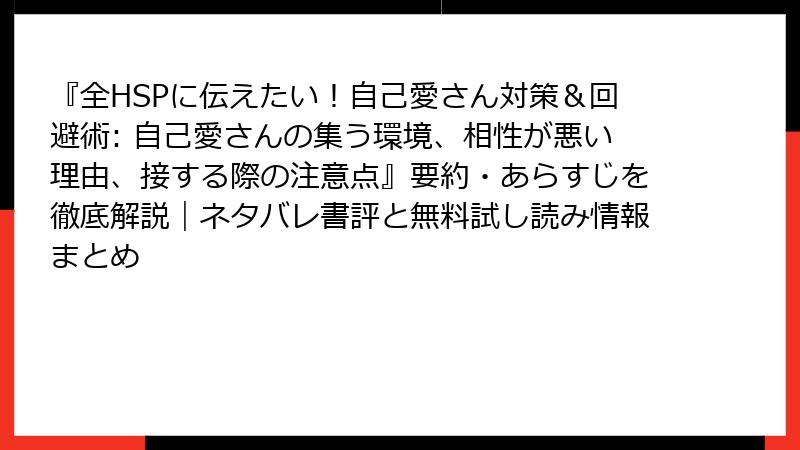 『全HSPに伝えたい!自己愛さん対策&回避術: 自己愛さんの集う環境、相性が悪い理由、接する際の注意点』要約・あらすじを徹底解説|ネタバレ書評と無料試し読み情報まとめ