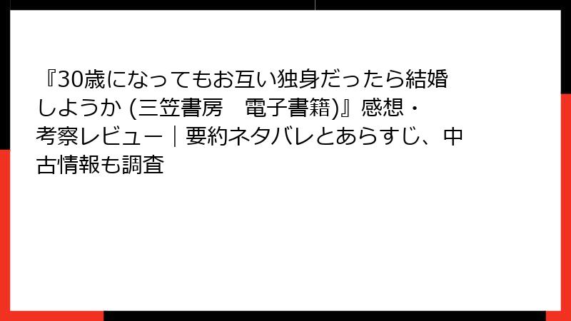 『30歳になってもお互い独身だったら結婚しようか (三笠書房 電子書籍)』感想・考察レビュー|要約ネタバレとあらすじ、中古情報も調査