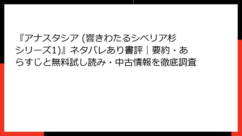 『アナスタシア (響きわたるシベリア杉 シリーズ1)』ネタバレあり書評|要約・あらすじと無料試し読み・中古情報を徹底調査
