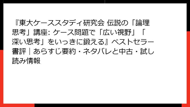 『東大ケーススタディ研究会 伝説の「論理思考」講座: ケース問題で「広い視野」「深い思考」をいっきに鍛える』ベストセラー書評|あらすじ要約・ネタバレと中古・試し読み情報