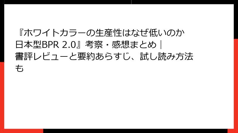 手軽に触れてみよう:『ホワイトカラーの生産性はなぜ低いのか 日本型BPR 2.0』の無料試し読み&中古入手ガイド
