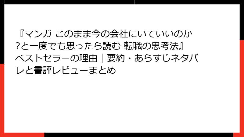 『マンガ このまま今の会社にいていいのか?と一度でも思ったら読む 転職の思考法』ベストセラーの理由|要約・あらすじネタバレと書評レビューまとめ